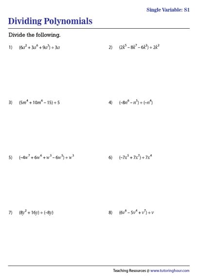 Dividing Polynomials Worksheet With Answers Pdf. Example ( x 3+ 3 x 2+x+9) ( x+2) write the question in long. Web incorporate this extensive range of dividing polynomials worksheet pdfs featuring exercises to divide monomials by monomials, polynomials by monomials and.